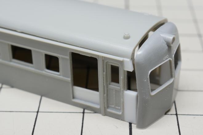 他、先週の段階では空いてなかったテールライトやワイパーパーツ用の穴を開口。ワイパーはこれまでの関西急電では省略していたので、今回も省略と思っていた。ところが今まで省略していた理由が「木枠窓では目立たない」だったことを思い出し、Hゴム窓となる今回は取り付ける。