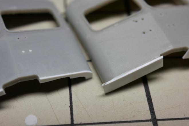 嵩上げはシンプル。下面に少し大きめのプラ板を貼り、本体のラインに沿って削るだけ。