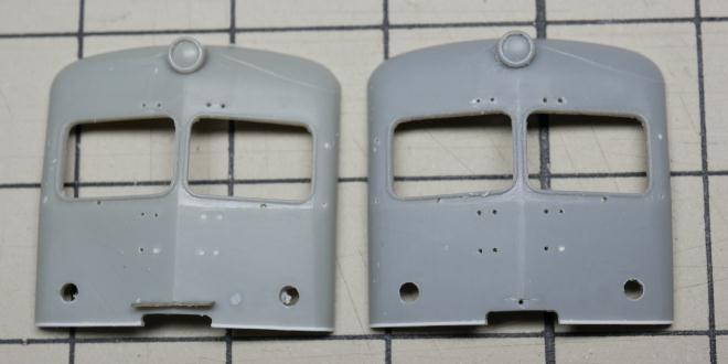 これまでいろいろとややこしい作り方をして知ったことだが、GMキットは形式によって天地方向のサイズがまちまちである。今回もクハ76前面が80系キットとサイズが合わない可能性を考え、ボディを仮組して前面パーツとの整合性をチェックした。かなーり微妙なところだったが、組んだ後屋根回りが合わないと悲惨なので0.2mm嵩上げすることにした。0.2mm嵩上げするとその分前面のバランスが崩れそうだが……GMキットはどこかで寸法が誤魔化されてるような気がするので、今さらの話だ(禁句?)。