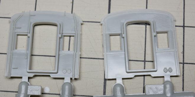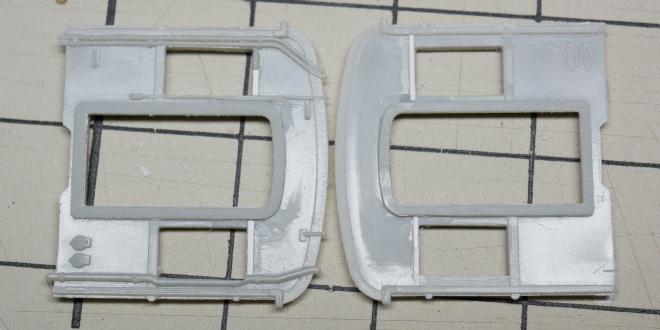 というわけで、妻面の窓部分を削り拡げ、そしてウィンドヘッダーを付ける。80系100番台の時と同様の加工だが、100番台はここのシル、ヘッダーがないことに気付かず付け直してしまった。