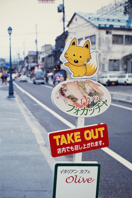 先月は7月の続きだったが、今日はさらにその続き。その後(多分一泊した後)小樽の街をぶらぶらした。土産物や美味しそうなご飯などいろいろなお店が並んでいたが、このとき目を惹いたのはキツネさん(可愛い)の看板。手作りフォカッチャを提供するイタリアンカフェ……これは入らねば!とはならないのが橘雪翼。フォカッチャがどんな料理か分からず、好き嫌いが激しく(この当時は今より激しかった)、どちらかというと洋食に苦手なものが多いので、いくらキツネさんが可愛いからってそれだけで店に入ることは出来なかった。今思えば「イタリアンカフェ」なので、別のフォカッチャを注文せずとも何か食べられるものはあっただろうに。と言っているが、実はキツネさんとフォカッチャしか目に入っておらず、イタリアンカフェであることは後日現像されたフィルムで認識したのだった。 |