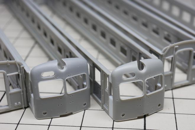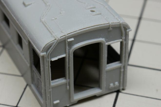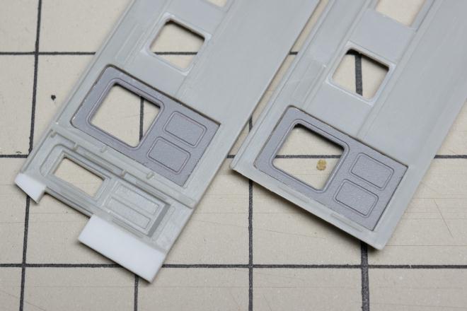 先週のその後、ドアパーツを取り付け。その前にプライマーで下地処理をしてグレーに塗装してある。 |