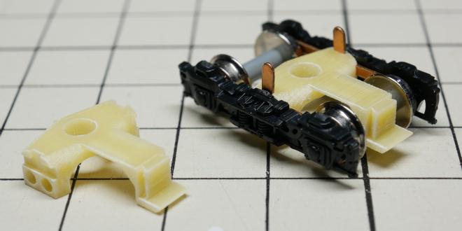 今回作る車両は台車がDT17で、GMからは出ていないパーツとなる。鉄道コレクション用動力ユニットには台車枠が付属しているので、これを活かす方法はないか……と探してみると、阪急キットの床下でお世話になっている武蔵模型工房さんがパーツを出していることを発見。今週届いたので、早速仮組してみた。期待してたよりはいささか頼りないだが、大きな問題はなく使えそうである。上手く行ったら関西急電第三次代用編成もこれに差し替えよう。 (2025.10.19)