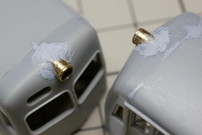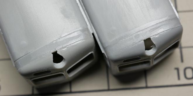 最初の写真の後、ヘッドライトパーツの周囲に僅かに生じた隙間を埋めるために、パテ盛りをしている。じっくり乾燥させたいので、今週はここまで。 |