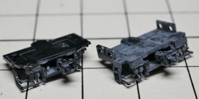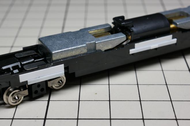 動力は先述の通り、古いモデルであるTM-09を使う。取り付けに関しては新型のTM-17と変わらず、鉄道コレクションとGMキットではツメ等が全く噛み合わないので、プラ板で適宜あれこれしてワンタッチでボディにはまるように調整した。 |
