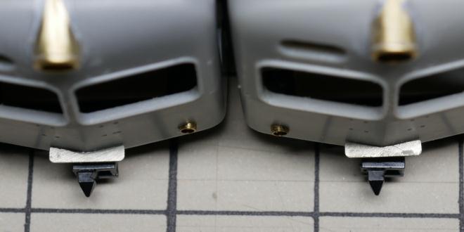 床板はTNカプラーとの干渉部を少し削り(写真撮るの忘れてた……)、ねじ穴を開けてある。実際装着してみたところで、若干取り付け位置に誤差が。手作業なのでこれぐらいは仕方がない。連結自体は出来そうなので良しとする。 |