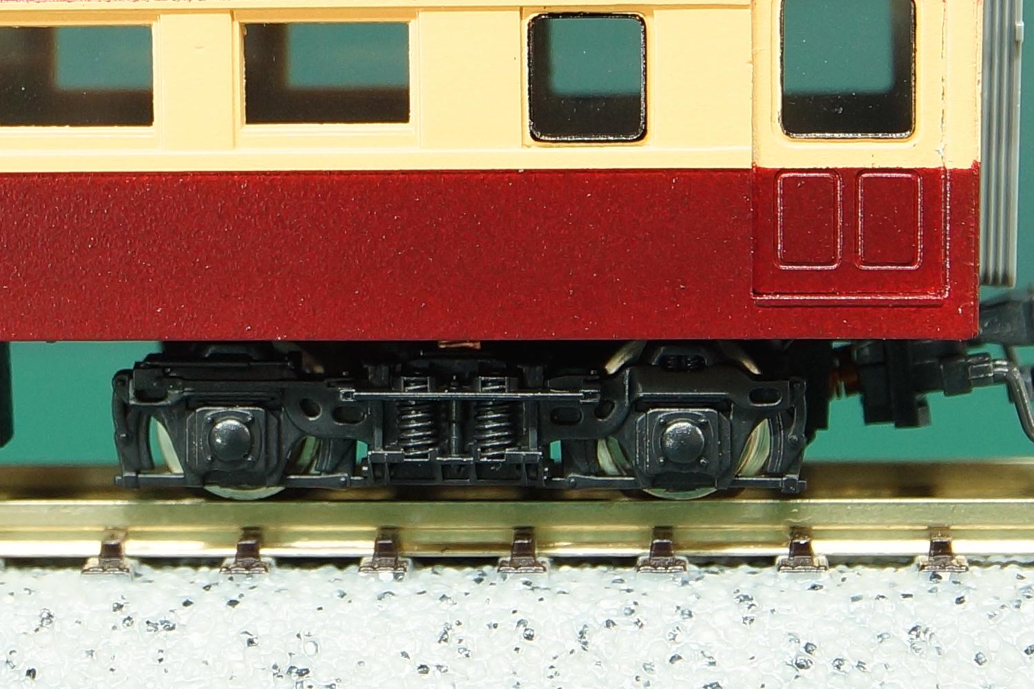 先頭車となるクハ86。奇数向きの86067と偶数向きの86068でジャンパ線の有無や床下機器の配置を違えている。1951年編成ではジャンパ栓受けだけにしていたのだが、今回そのものずばりの86067の写真がなく、後でしっかり考察しよう……と思っていたら忘れていつもの手癖でジャンパ線付きのパーツを付けてしまった。多分栓受けだけのような気がする……。 |