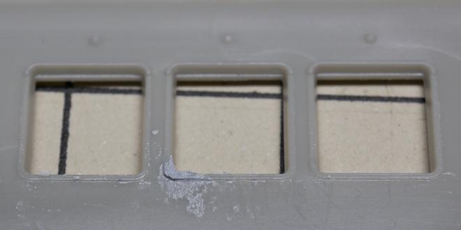 こちらも「いつものやつ」で、先頭車側板の窓の金型が歪んだところも並行して修正しておく。 |