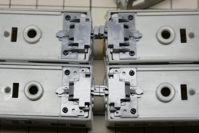 今回は一部の連結箇所にTNカプラーを使うため、床板の干渉する部分を削り落とし、取り付け用のねじ穴を開けておく。先頭車の寸法が厳しいと思っていたが、むしろ中間車の方がギリギリだった。ギリギリセーフだと思うのだが、ギリギリアウトだと困るので幌枠は少しだけ薄く削ったものを一組用意しておいた。