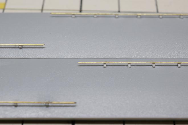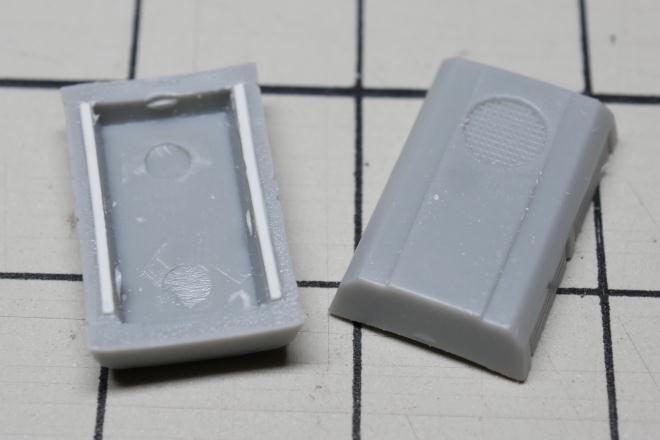 今週その他の作業としては、クーラーの加工。ゲートやバリ取りの他、少しだけ浮かせるために裏側にt0.2のプラ板を細く切って貼り付けた。 |