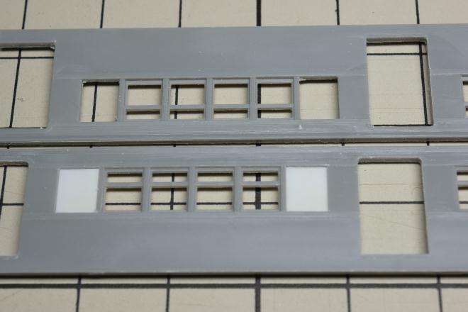 今週もあまり進んでいない。ドア抜きと、先週書いた「この後やる作業」のところで忘れていた「戸袋窓のHゴム化」の第一段階を行っただけ(写真下プラ板を嵌め込んだ箇所)。作業進行の妨げとなっている諸々が概ね片付いたので、来週から本腰入れられるといいなあ。