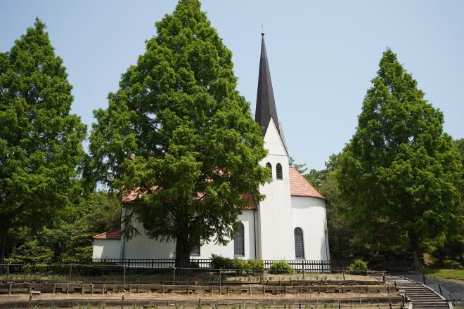 教会内部。現代でも普通に残ってそうな建物だった。小学生のグループがタブレット端末で記念写真をしており、今時の小学生は当たり前のようにタブレットを使ってるんだなあと別のところで時代の流れを感じていた。 |